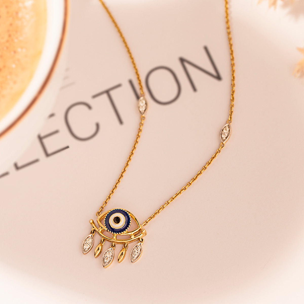Grace and protection blend beautifully in this elevated evil eye pendant with a brilliant diamond center. Suspended from a dainty gold chain, it’s a chic and spiritual essential.